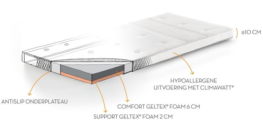 Hypoallergene oplegmatras met Comfort GELTEX® Foam kern van 8 cm.